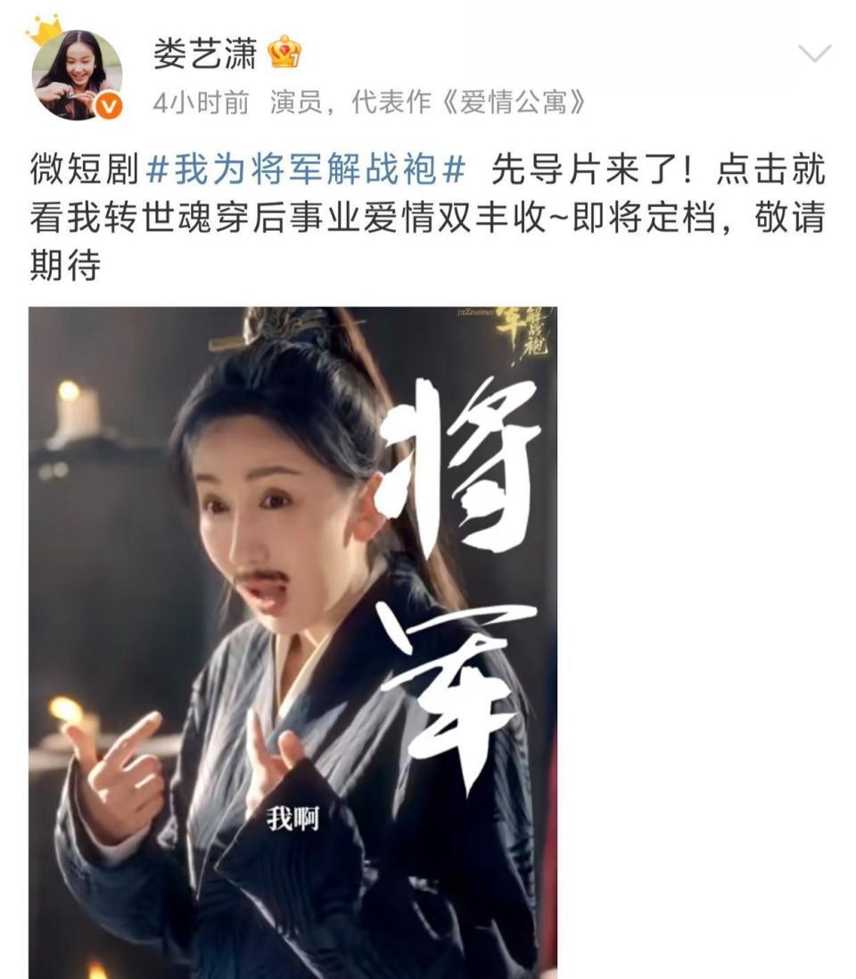 此外,曾因《爱情公寓》演活了女主胡一菲的娄艺潇,也在去年下半年进军短剧市场。
