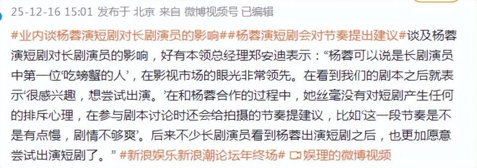 不过演技方面,杨蓉不容小觑,尤其是早在2023年年初,她便做了第一批吃螃蟹的人,出演了都市短剧《二十九》,还因作品质量出众被官媒点赞。