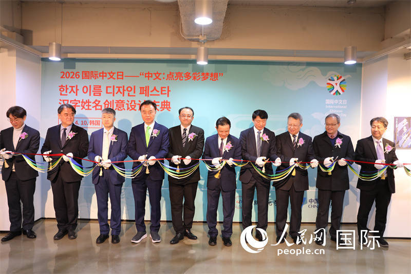 出席活动的嘉宾共同为“2026国际中文日”系列活动剪彩。人民网记者 莽九晨摄