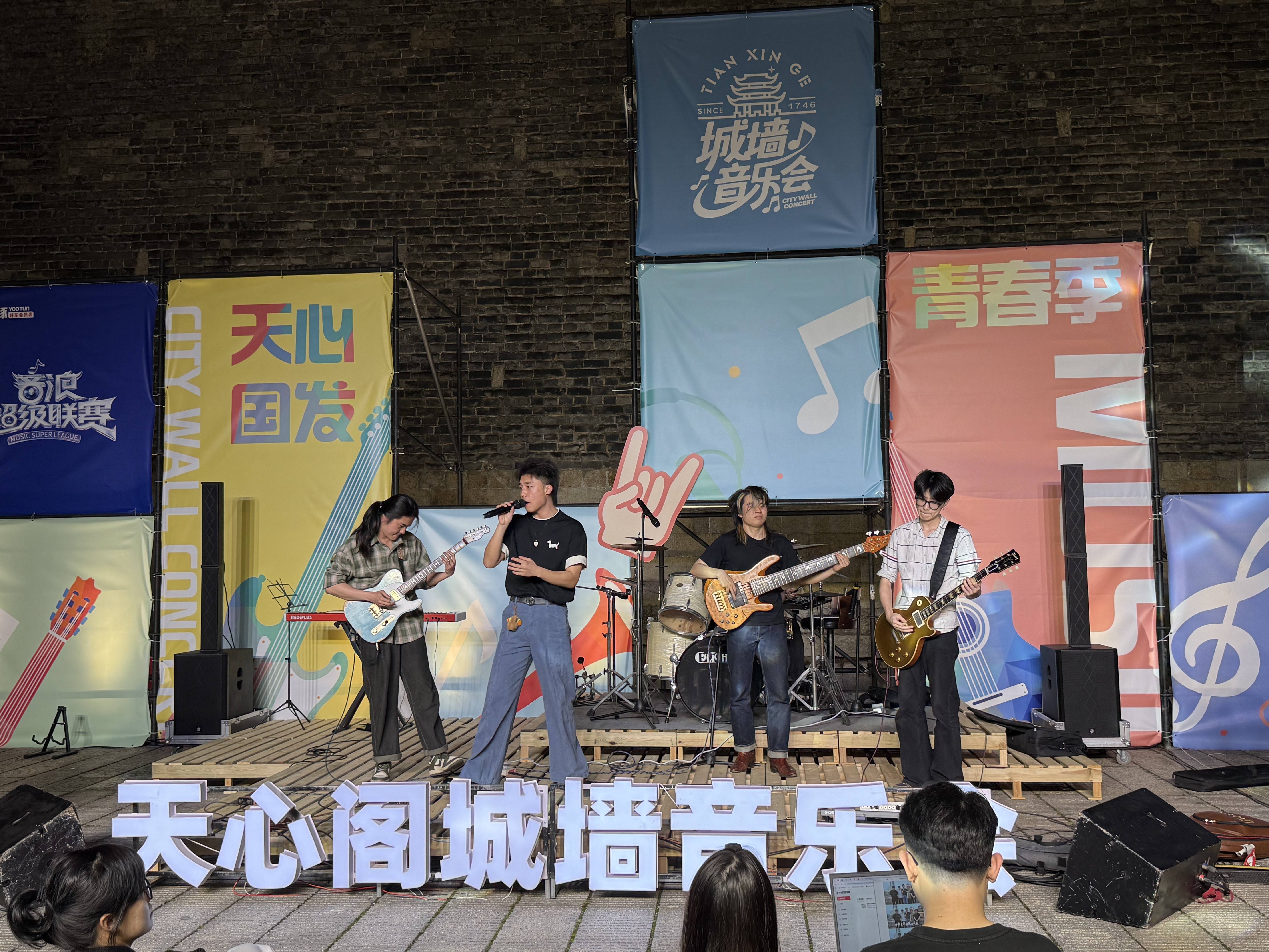 19日晚开唱的天心阁城墙音乐会青春季开幕赛,更是即将于五一假期启动的长沙天心阁“城墙FUN歌”音乐周的先导场,由中南大学黑颂乐队和湖南第一师范学院晨昏线乐队率先登场,带来一场充满青春氛围的演出。